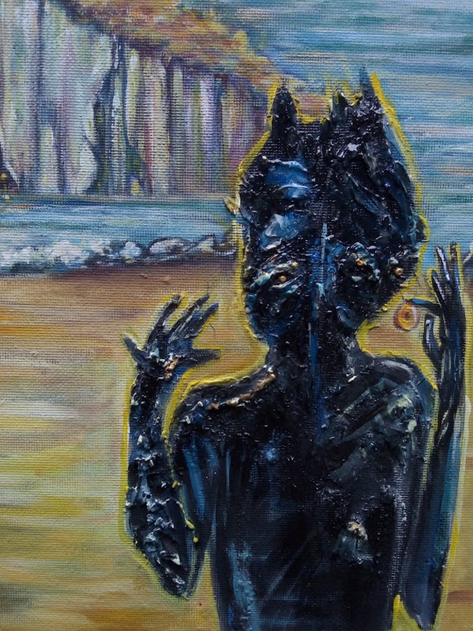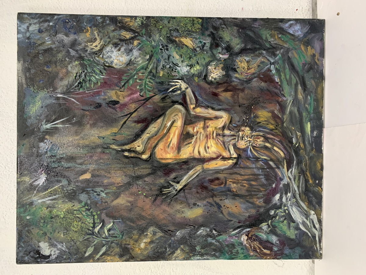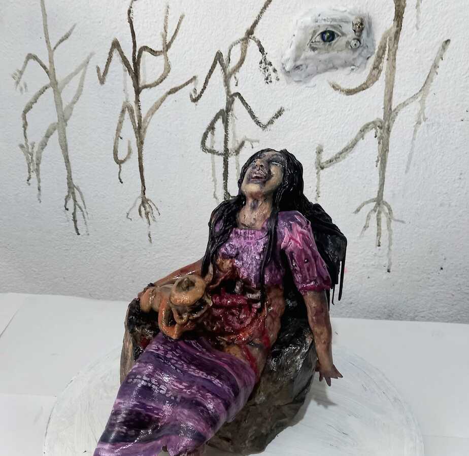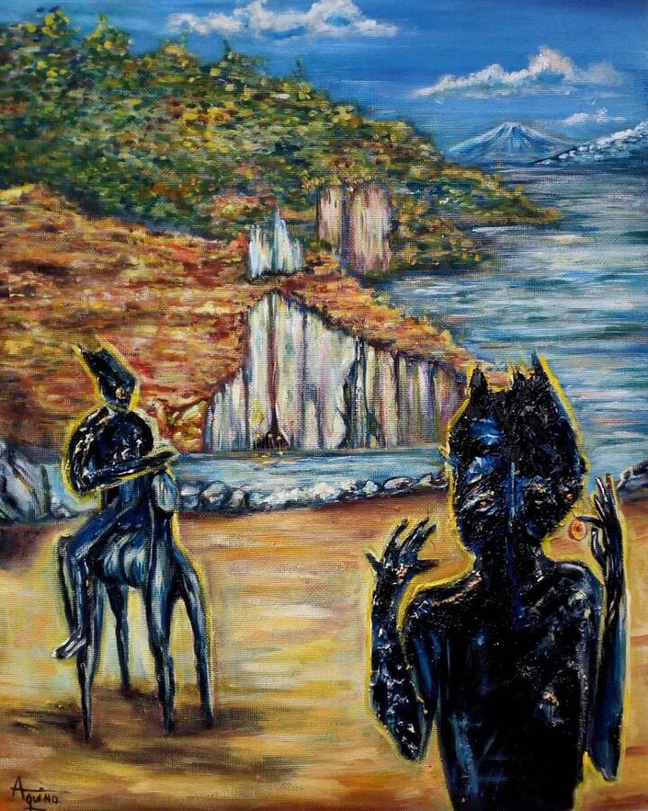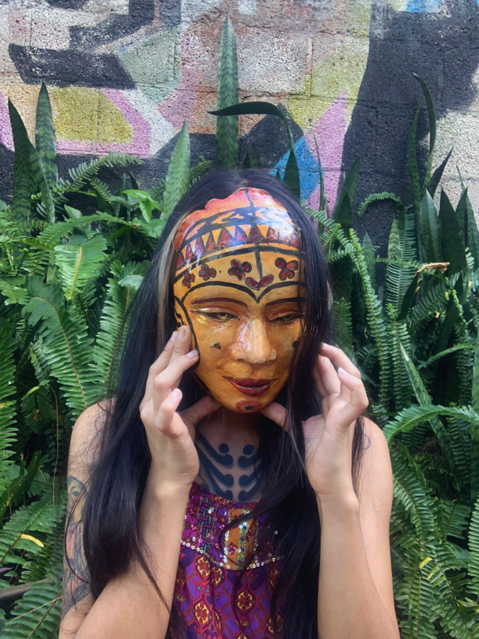 Mi trabajo se vincula con la memoria histórica, las luchas sociales, ambientales y con los estancamientos mentales que nos provoca la deshumanización de la modernidad, mi obra es el desahogo de la opresión invisible y masiva que nos lastima como sociedad. Desesperadamente estoy en una búsqueda de la memoria, justicia y de la conexión con la madre tierra, por eso a través de los procesos orgánicos y experimentales utilizando las artes plásticas t abro el dialogo, hago el llamado como un grito a las mentes por medio de la imagen, a veces violenta otras mística usando los medios de, la escultura, el mural la pintura, el video creando una una obra híbrida, explorando el significado de ser humano conflictuado por la necesidad de materia despojándonos del interés y el poder creer en las luchas del entorno. Existe una lucha constante en mi obra representa mis inquietudes y la luchas que me importan, así como la urgencia de mantener nuestra identidad, explorarla transformarla, honrarla, usando la literatura, historia, y los procesos artesanales como pilares para mis procesos artísticos.Debora Aquino Calel, nacida en Cuidad de Guatemala en año 1996. pintora muralista y escultora .Inicio sus estudios en la escuela superior de arte en la licenciatura en artes visuales USAC, cuenta con diplomado en autogestión y curaduría por: Perjura proyecto, estudios independientes. Conformo parte del colectivo de muralistas del proyecto de “Arte y turismo un país con más color "Dirigido por INGUAT. con 7 años de estar transformando calles de todo el país a través del muralismo para educar concientizar, reivindicar y comunicar a la población. Maestra de escultura de la academia de arte Matices. Ha colaborado como parte de la Junta directiva de (SINTAP) encargados de gestionar exposición colectiva anual de plástica contemporánea en palacio Nacional. Participado en numerosos festivales de muralismo en interior del país artes para las comunidades, festivales de pintura y Exposiciones colectivas.