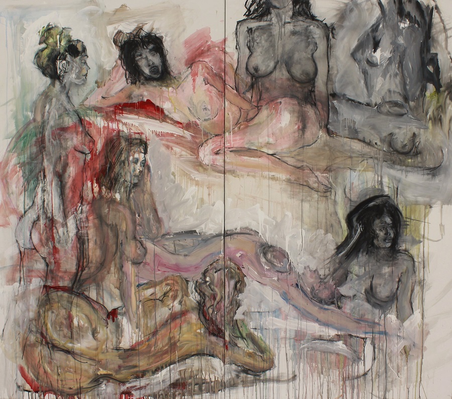 La ciudad se apagó, arrastrando la última luz. Por la noche, las imágenes del día regresan: cuerpos sobre un telón blanco, sin sombras, todo homogéneo, como luz invernal. Entre ese blanco absoluto la llovizna se agita, seca y punzante, como arpegios de Paganini. Lo sagrado se ha retirado. Sin embargo, el instante se abre al disfrute: el cuerpo como paisaje, el deseo como materia.