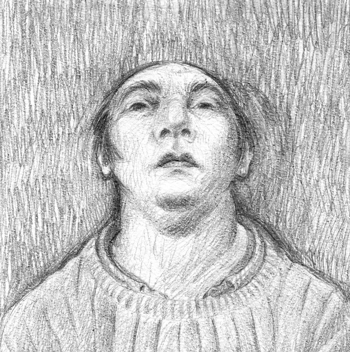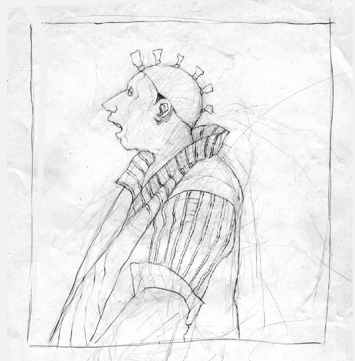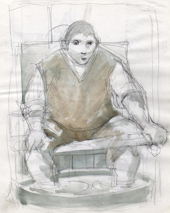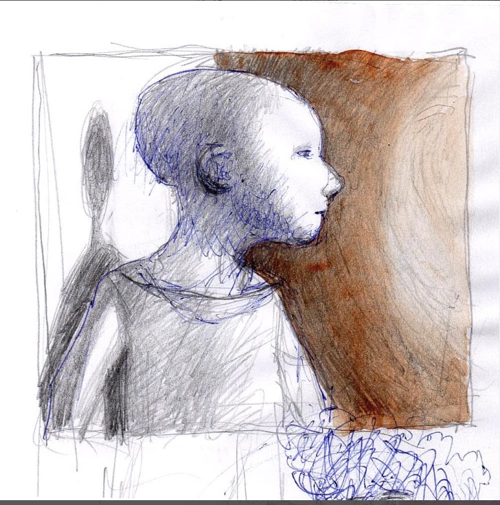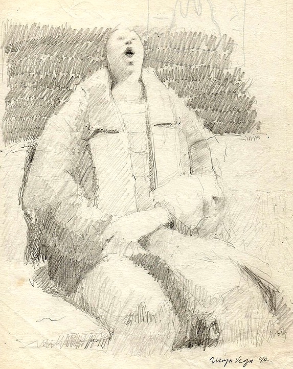Mi primera y temprana aproximación al dibujo, fue natural y espontánea. Luego, al descubrir en los artistas ese talento mágico, de hacer aparecer en un papel mundos ficticios que se veían reales, desde los monos de historietas, hasta los mas depurados paisajes o descriptivos mundos inventados, reales o mágicos, que daban a pensar que cualquier cosa era posible. Las revistas de comic, las caricaturas de los programas de televisión, todo el material gráfico al que se podía acceder y finalmente a mis propias divagaciones y ensueños inherentes a la niñez. Mucho después, el aprendizaje, fruto del ejercicio constante, le fue dando al dibujo connotación de lenguaje expresivo y se convirtió en una herramienta eficaz, para dar rápidamente cuerpo a las ideas. La impaciencia ha sido un motor y el dibujo su aliado. Con el tiempo aparecen otros materiales, pero incluso la pintura se me agrega como una posibilidad más para dibujar, explorando el fluir de las aguadas que aparecían tras los trazos dibujados. El color no se me da espontáneamente y cuando debí aplicarlo en los ejercicios de pintura, si bien los abordé con cierta corrección, no tenían esa fuerza vital que encontraba en los ejercicios de dibujo. Lo austero de la línea y su graduación siguen siendo de mi máximo interés. Pinto por el gusto de pintar. Asumo el acto de pintar como una acción natural y básica, al prolongar en el gesto y la inscripción una intención expresiva. En relación a mi modo de trabajo, es fundamentalmente el gesto y la acción rápida y espontánea, por lo que también surge el azar como otro factor del proceso. Pero así como este le añade la fuerza vital de lo espontáneo, también suele ser un recurso muy usado por artistas para disimular los ripios del autor. La temática de mi trabajo se ha ido perfilando en relación con lo que a mí me inquieta o interesa perceptivamente del entorno. Es el resultado de un enfoque de otros planos mentales de mi modo de percibir la realidad. Son en general ejercicios. Mis obras más satisfactorias son precisamente eso, ejercicios que se realizan con esa libertad y esa apertura. Revisando antiguos trabajos hasta hoy, lo primero que salta a la vista es obviamente la predominancia del dibujo y la reiteración sostenida de la figura humana. No sé exactamente como empezó la atracción por ella, supongo que fue el potencial expresivo de esta, al apreciar un buen dibujo y la estimulante dificultad para sortear los problemas de superficie, luz, sombra, color o las proporciones en la estructura, escondidos bajo la piel y la musculatura. En otro plano, la figura humana resuena como reflejo de identidad colectiva y su gran carga expresiva. Suelo dibujar rostros no literales o académicos, rescatando elementos expresivos mínimos, que van armando figuras, puestas como cosas, estáticas y con leves gestos. Espero que esa economía, pueda imponerse y amplificarse en la percepción. Rostros, cuerpos en situación pasiva, expuestos a la intemperie, al deterioro y a la propia y descarnada contemplación. El cuerpo se cubre, se ornamenta y codifica, se esconde, se asemeja y clasifica, pero el rostro está siempre allí, desnudo, despojado, limpio. En ocasiones, la figura humana aparece rodeada de un fondo básico, que provea cierta atmósfera. Quizás también, algún elemento que tensione o refuerce la composición. No pretendo hacer una descripción de rigor académico ni “realista” de los temas que me interesan, sino lograr mediante la economía de recursos, síntesis formal, pero con el desparpajo del goce visceral por el trazo, toda la profundidad y significado que pueda dar mi particular enfoque. A pesar de las diversas manifestaciones visuales que me interesan, sigo necesitando que estas me sorprendan a primera vista, “emotividad pura”, enamorarme de ellas en la primera pasada, aunque luego se conviertan en una experiencia más racional y reposada y tal vez pierdan el interés. El tratamiento que doy a las obras, es el propio de un trabajo que se resuelve con rapidez, como lo serían el croquis o el boceto, es decir, sin reparar tanto en el detalle o modelado, partiendo desde trazos sueltos o leve aguada, para luego ir determinando el dibujo, teniendo, tal vez, un esquema en la mente de lo que pretendo, pero sabiendo que la imagen final debe aparecer en el procedimiento directo. A menudo, la idea inicial es vaga y no tengo la seguridad de una visión previa o acabada de lo que busco. Esta va apareciendo en el proceso, lo que hace más estimulante el trabajo. Para que el tema se complete (rápidamente aprovechando el impulso) uso como modelo mis propios gestos ante el espejo, lo que a la larga ha producido cierta similitud en la galería de rostros que pueblan mi cuerpo de trabajo. Con la mancha y el color busco solidez y espontaneidad, el color no debe ser “relleno” sino incluso estructural en la imagen. Un goce personal es explicitar el proceso, manteniendo las correcciones a la vista. A veces se hace necesario un gran formato que permita la soltura gestual, la mano, el brazo, todo el cuerpo se involucra.